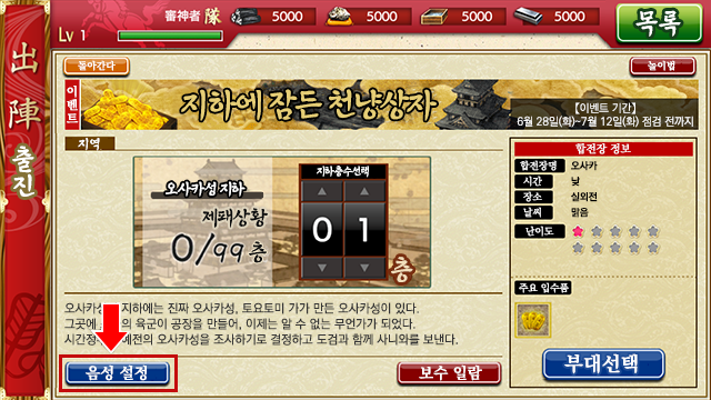 「출진(出陣)」의 「합전장 선택(合戦場選択)」에서 이벤트 배너를 선택하여