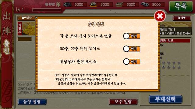 이벤트「지하에 잠든 천냥상자」 보이스 재생 여부를 설정할 수 있습니다.